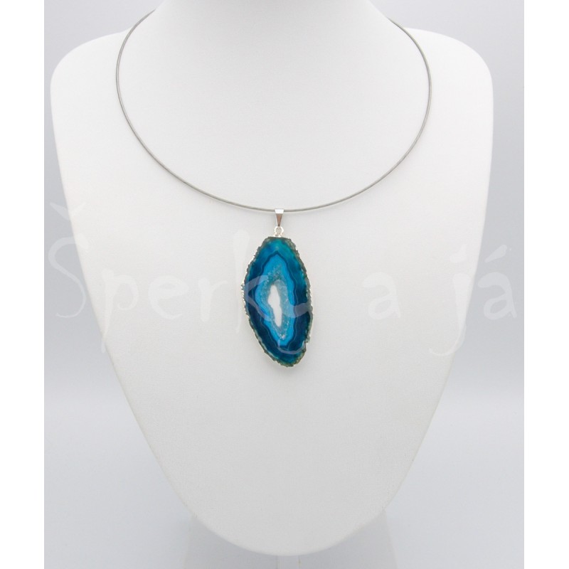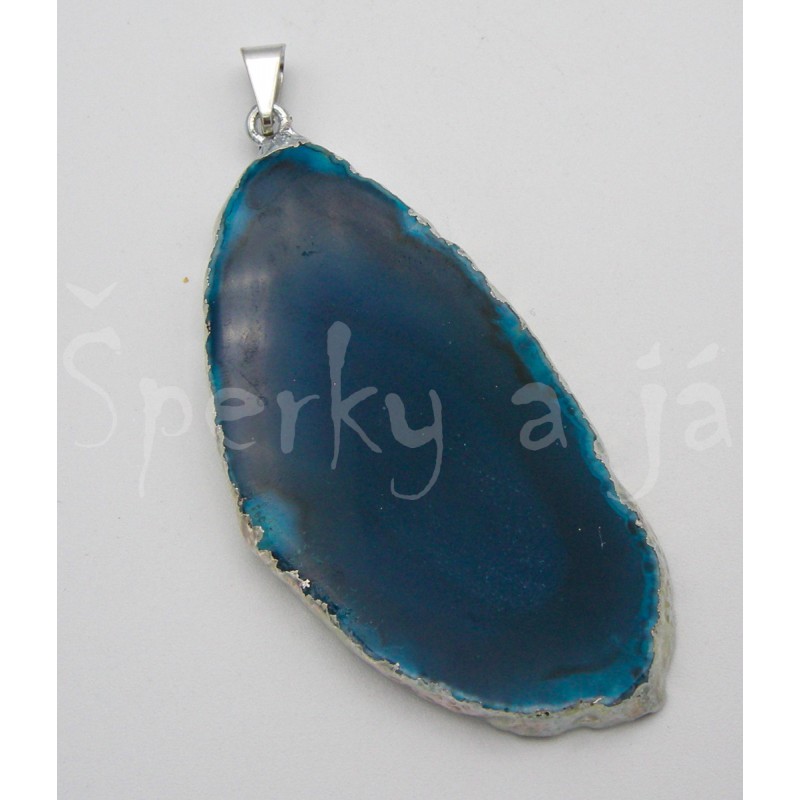 Kámen: přírodní achátový plátek barvený, po okrajích nanesena stříbrná galvanika