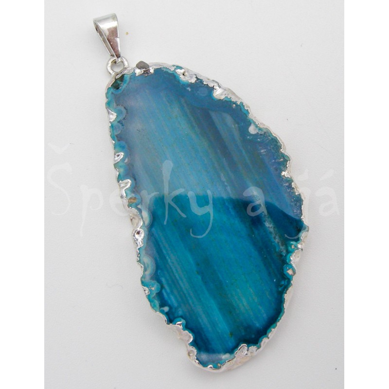 Kámen: přírodní achátový plátek barvený, po okrajích nanesena stříbrná galvanika