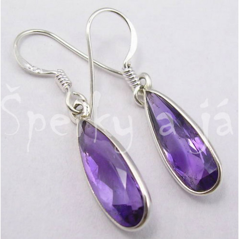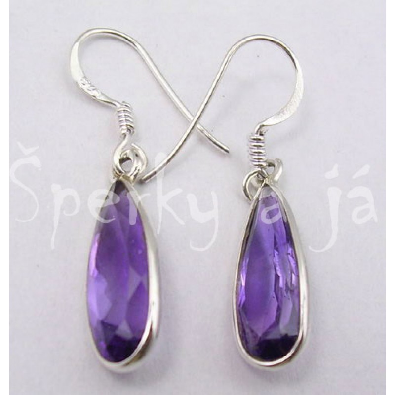 Stříbrné náušnice ametyst dlouhá kapka | SPERKYAJA.CZ