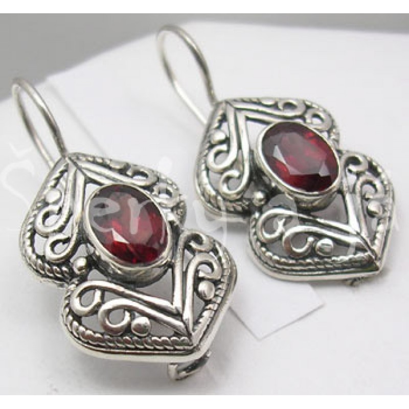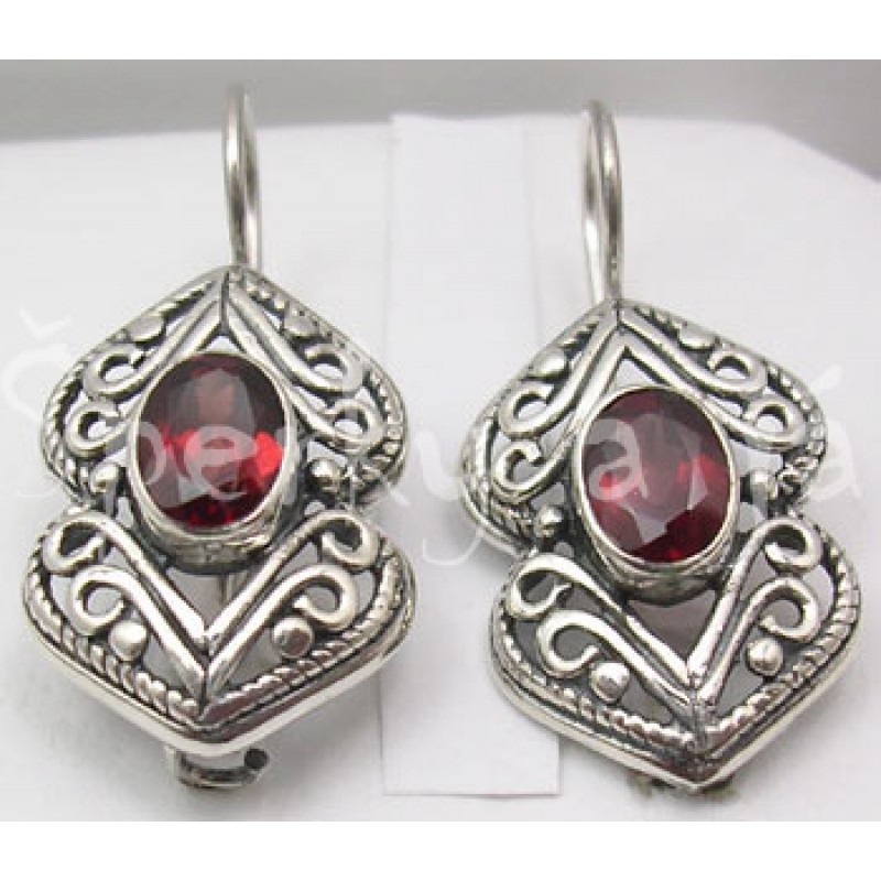 Stříbrné náušnice granát šiška | SPERKYAJA.CZ