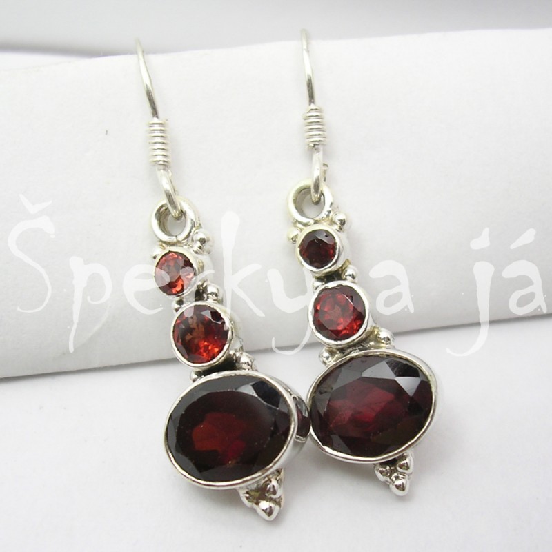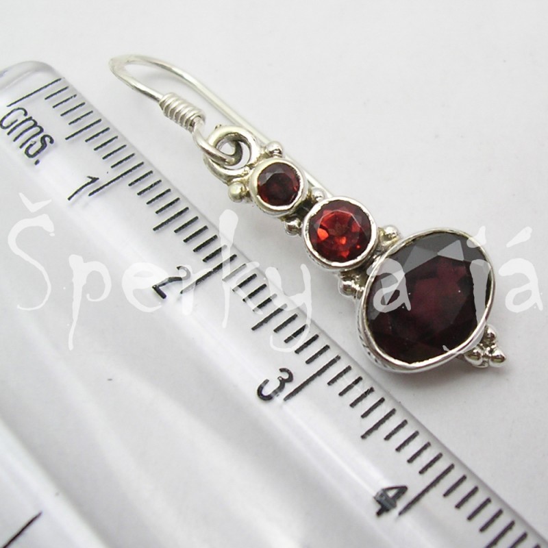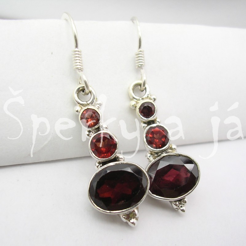 Tagy: Stříbrné, náušnice, granát, sněhulák, Náušnice, Červená