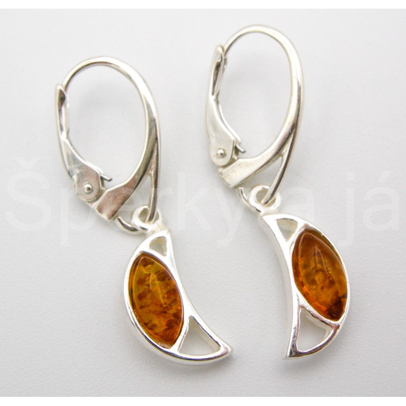 Stříbrné náušnice jantar měsíc | SPERKYAJA.CZ