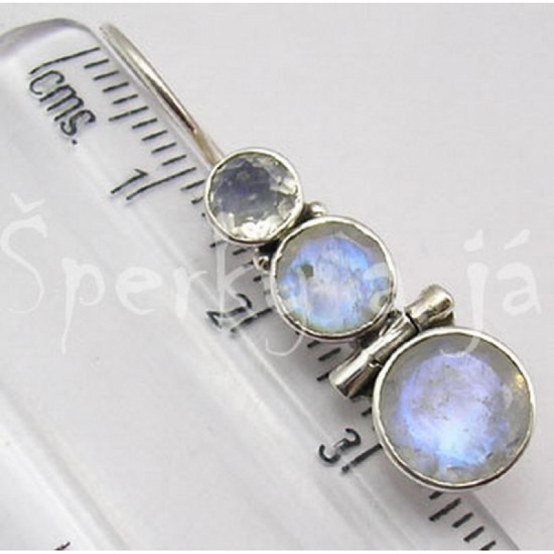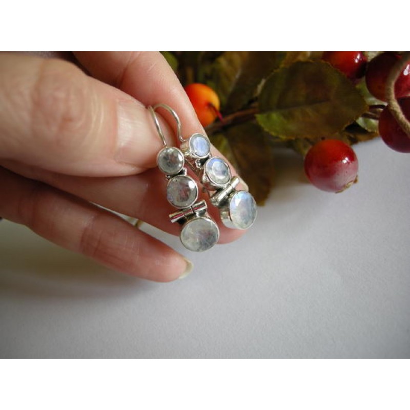 Centrální kámen: přírodní měsíční kámen broušený, rozměry cca 8, 6 a 5 mm průměr v každé náušnici (kulatý)