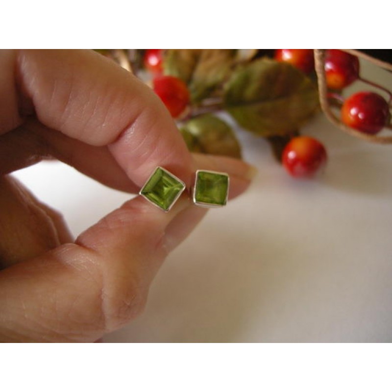 Centrální kámen: přírodní broušený olivín rozměr cca 6 x 6 mm (čtverec)