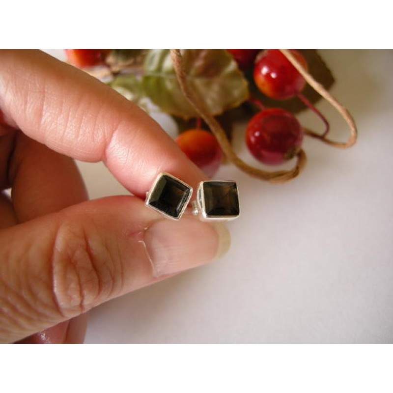 Stříbrné náušnice záhněda čtverec  Náušnice
