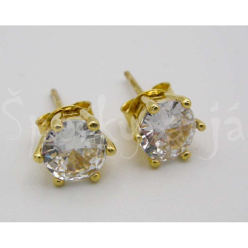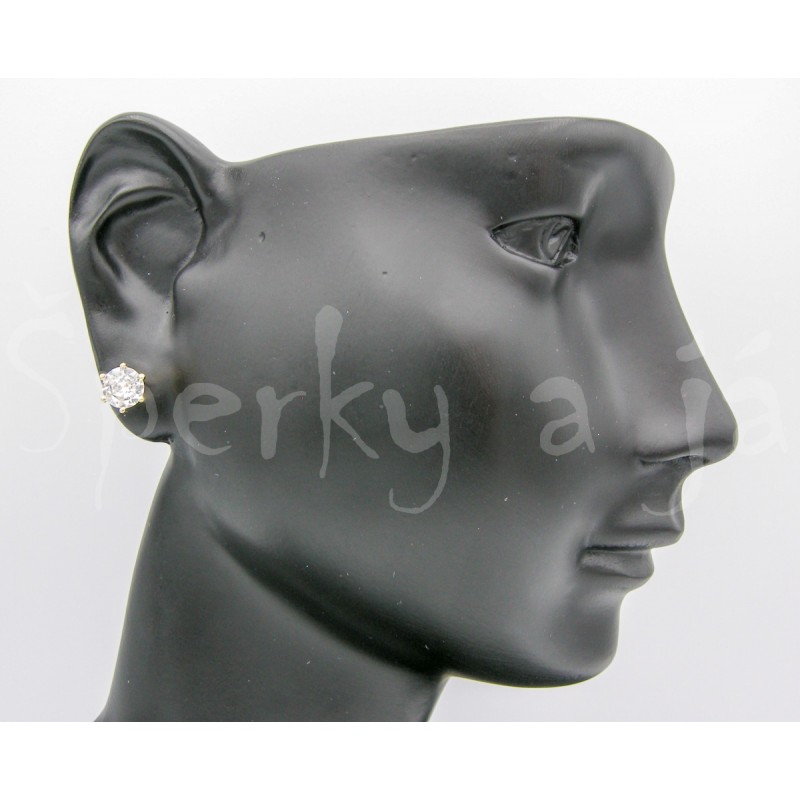 Centrální kámen: broušený syntetický zirkon, rozměr cca 6 x 6 mm průměr (kulatý)
