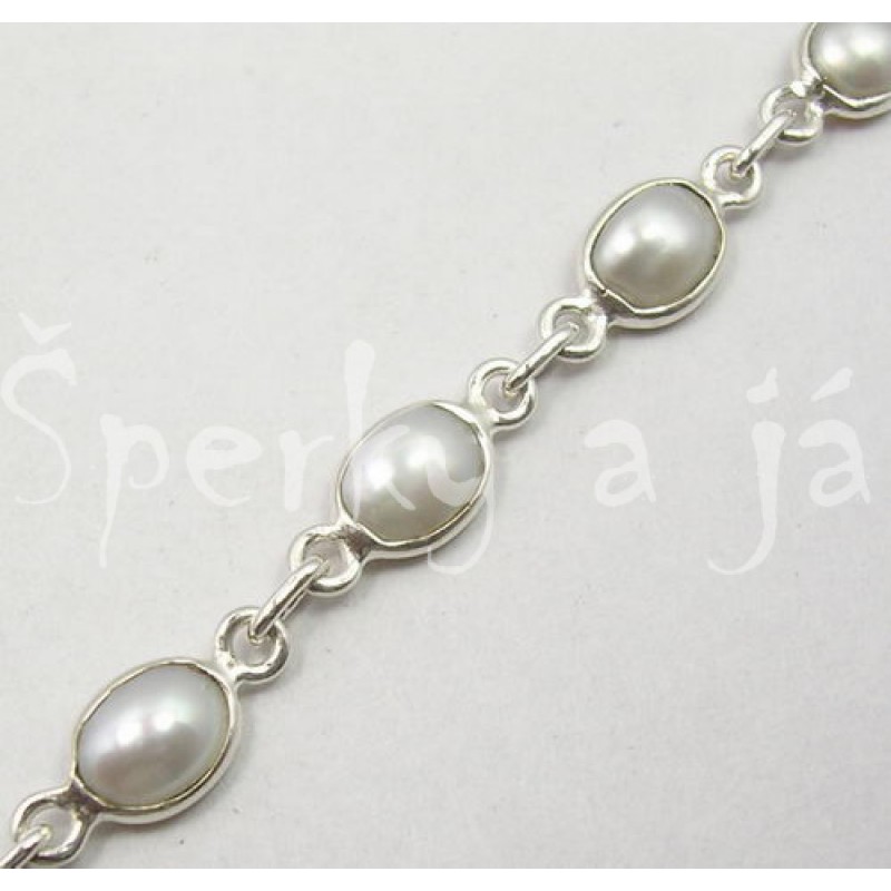 Stříbrný náramek perla ovál | SPERKYAJA.CZ