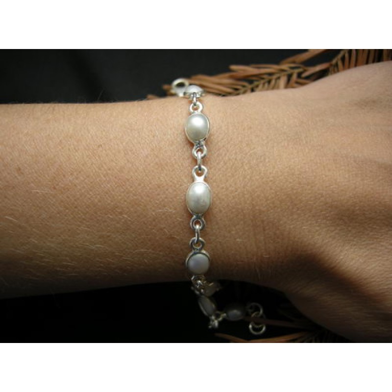 Tagy: Stříbrný, náramek, perla, ovál, Náramky, Bílá