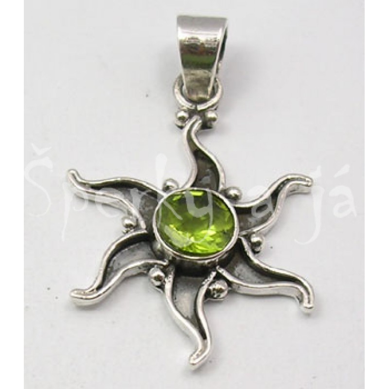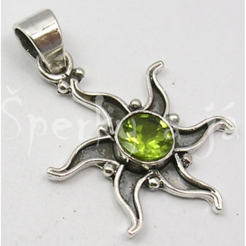 Stříbrný přívěšek olivín slunce | SPERKYAJA.CZ