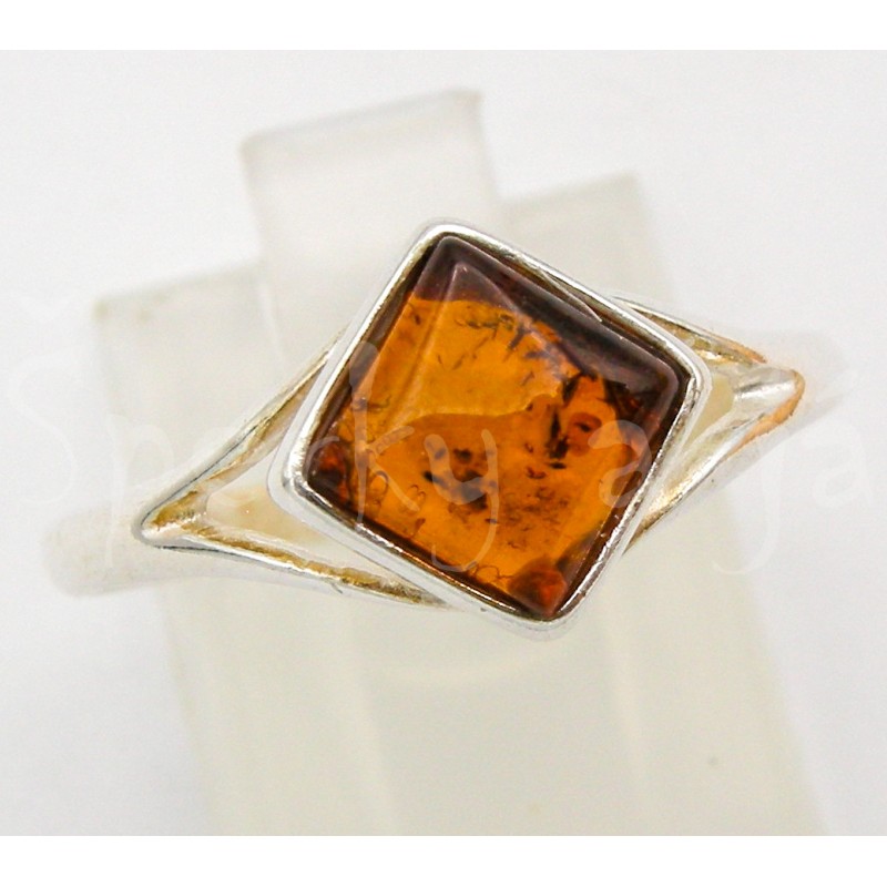 Stříbrný prsten jantar čtverec | SPERKYAJA.CZ