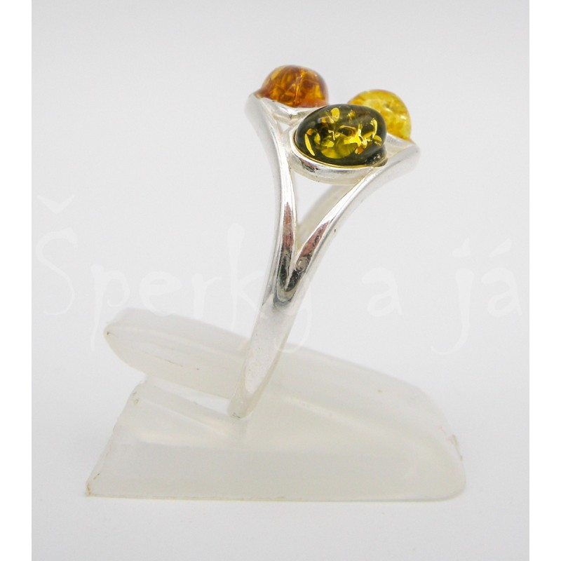 Tagy: Stříbrný, prsten, jantar, trikolor, Prsteny, Vícebarevná